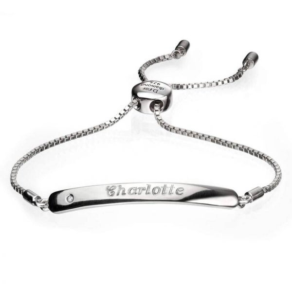 This beautiful adjustable toggle bracelet from D for Diamond is perfect for any little one. Crafted in sterling silver and featuring a sparkling single diamond (0.01ct) to the left of the ID bar, this bracelet will make an ideal gift. Why not make your gift extra special with a meaningful engraving of a name, date or small sentimental message using our free engraving service!