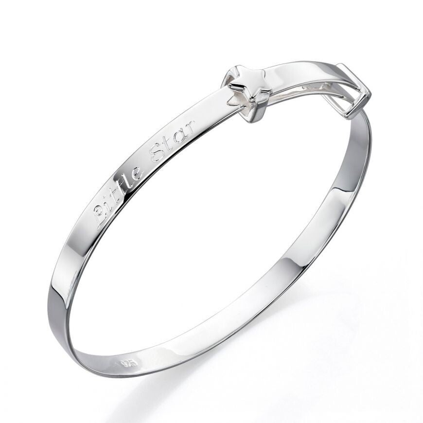 This sweet and small sterling silver star baby bangle is perfect for your little one, or to send as a gift for a new baby arrival or Christening! Why not also add a personal touch with a engraving? Engrave on the outside or the inside of the bangle.