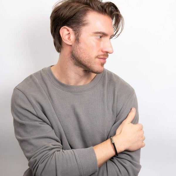 Material: Stainless Steel and Woven Black Suede Bracelet
