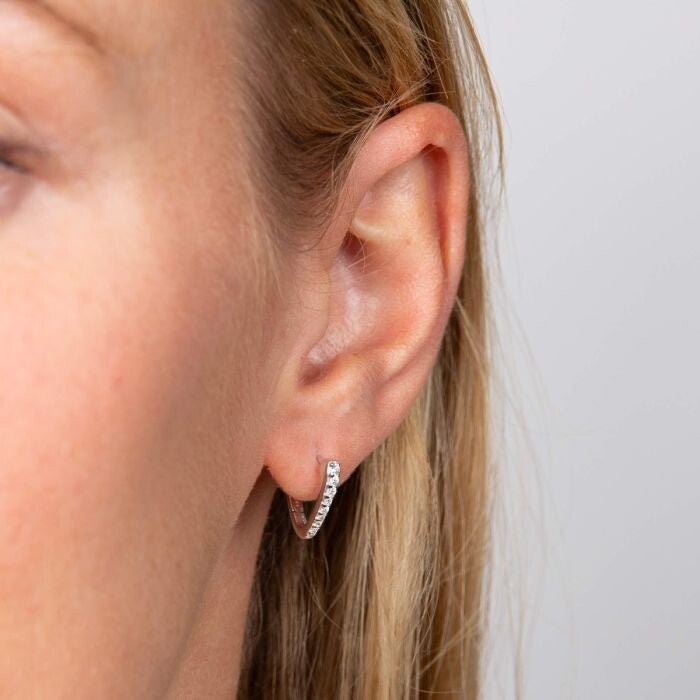 These pave pointed hoop earrings are a stunning blend of contemporary style and timeless elegance, designed to celebrate women who are unapologetically themselves. Crafted from recycled sterling silver with a radiant platinum plating, they offer both sustainability and sophistication. The pointed hoop design, embellished with sparkling cubic zirconia, adds a touch of refined glamour to any outfit. With their sleek form and shimmering stones, these earrings are perfect for any occasion, whether you’re looking to make a bold statement or elevate your everyday style.