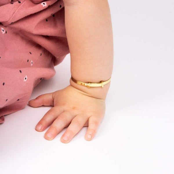 This adorable heart motif baby bangle is perfect for your little one, or to send as a gift for a new baby arrival or Christening! Crafted in sterling silver, why not add a lovely personal touch using our engraving service? Engrave on the outside and inside of the bangle with a beautiful sentimental message that will be cherished as the child grows.