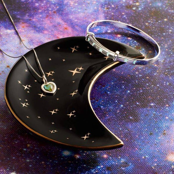 Inspiring a world of imagination, this magical mood stone pendant is a delightful piece designed to encourage any little one. Crafted from recycled sterling silver and plated with shimmering platinum, this enchanting pendant features a unique colour-changing mood stone at its centre, reflecting the wearer’s emotions. Watch as the heart-shaped stone transitions through a spectrum of colours, each revealing a special mood: Green for feeling confident, Yellow for when they're worried, Black for when they’re feeling tired, Blue for moments of calm, Purple for feeling energetic and Pink for when they’re truly happy. Don’t forget to pair it with the matching heart shaped mood ring for a complete look!
