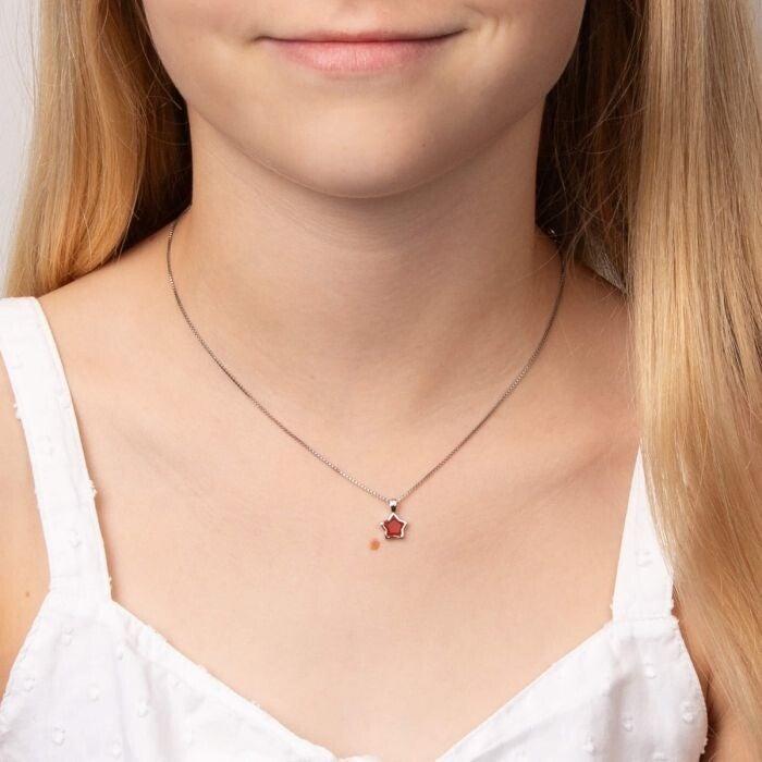 These birthstone necklaces are a beautiful collection of different coloured semi-precious stones, which each correlate to one month of the year, and will make for the perfect birthday gift for a little star in your life! Crafted in recycled sterling silver with a platinum plating, these semi-precious star birthstone necklaces not only feature an adorable diamond set in the top of the bale, but also an extendable chain length. These necklaces can be paired perfectly with one of our engravable tag pendants to add a sentimental touch too!