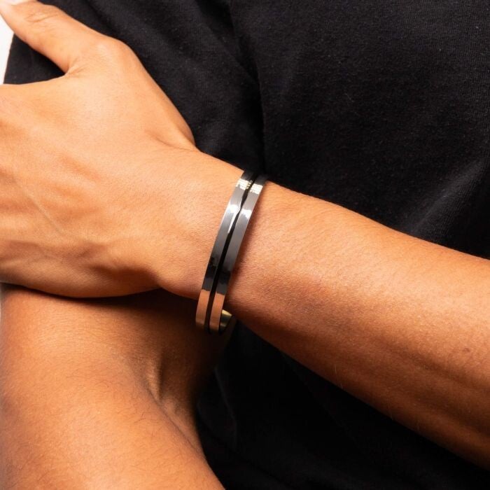 Style: Black IP Detailed Stainless Steel Cuff Bangle