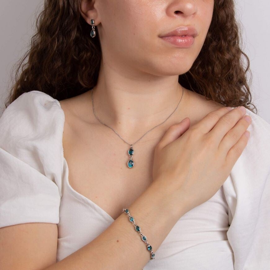 Bringing a contemporary update to a much loved style, this bracelet features crystals set into a chunky silhouette border. Crafted in sterling silver, this bracelet has an extendable length of 17cm-20cm. With calming and floral tones becoming increasingly popular, this piece is not one to miss! Why not also wear with the matching earrings and pendant for a complete style!