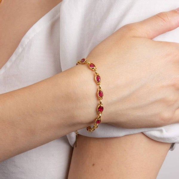 Silver Bracelet B5384P Fiorelli Fushia Nano Crystal Gold Plated Silver Bracelet