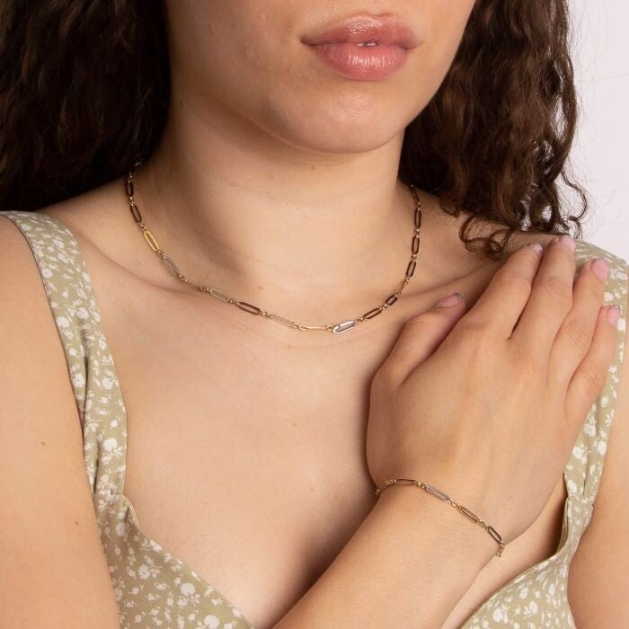 Style Mixed Gold Elongated Link Bracelet in 9ct Gold
