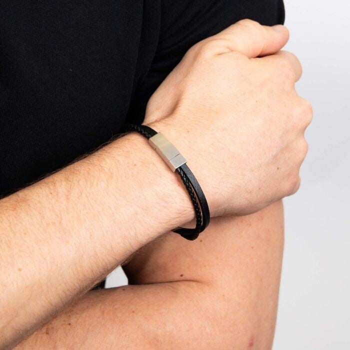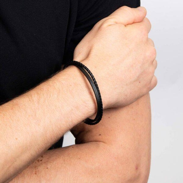 This genuine leather double-row bracelet is sure to stand out from the crowd. Featuring a stainless-steel magnetic clasp, this bracelet makes an ideal gift for someone who values stylish, thoughtful accessories.