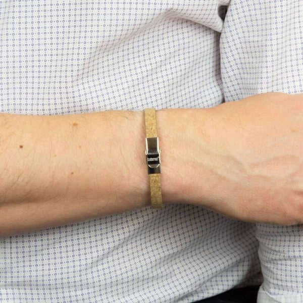 Part of the new spring supplement collection and in a material brand new to Fred Bennett, this bracelet is crafted from natural cork and is sure to compliment any style choice. With a total length of 21.5cm and featuring a stainless steel hook and clip clasp, this piece is perfect for those who are mindful of the sustainability of what they buy and wear.